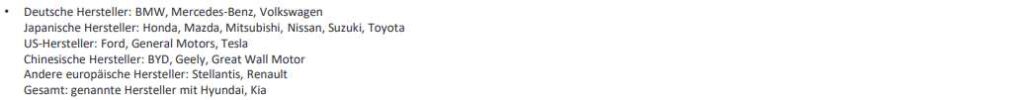 Auch bei der Umsatzentwicklung lagen die chinesischen Autokonzerne mit einem Umsatzplus von 20 Prozent weit vorn, wenn auch noch mit kleineren Gesamtvolumina. Die deutschen Konzerne verzeichneten hingegen ein Umsatzminus von vier Prozent, die US-Konzerne schrumpften um zwei Prozent, Stellantis und Renault zusammen um neun Prozent.