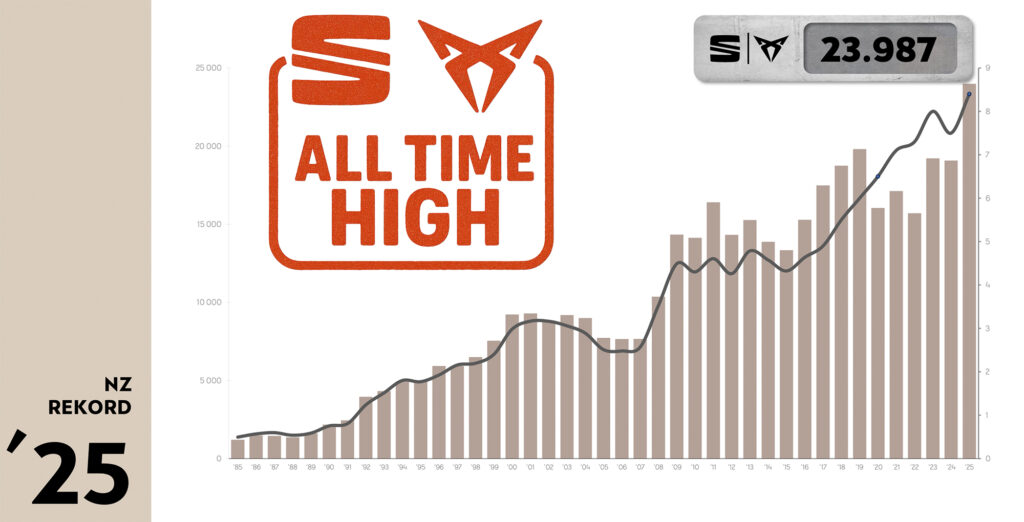 „Es freut mich ganz besonders, dass wir 2025 das absolut beste Jahr der Geschichte beider Marken feiern können. Für unsere Händler war das Zusammenspiel der Einstiegsmarke SEAT sowie die steigende Performance von CUPRA und ein breites Angebotsspektrum der Schlüssel zum Erfolg“, sagt Timo Sommeraurer, Markenleiter SEAT und CUPRA in Österreich.