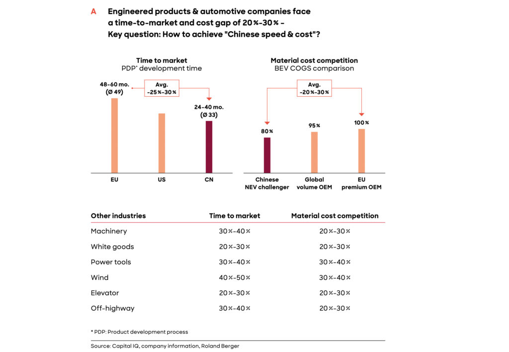 Chinesische Industrieunternehmen setzen weltweit Maßstäbe bei Entwicklungsgeschwindigkeit und Kosten. Im Automobilsektor entwickeln chinesische Hersteller neue Fahrzeuge heute 25-30 % schneller als europäische Wettbewerber und halten gleichzeitig einen Kostenvorteil von 20-30 %.