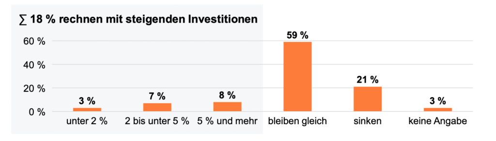 Auch die Investitionsbereitschaft bleibt verhalten. 18 % planen steigende Investitionen, 21 % rechnen mit einem Rückgang, 59 % gehen von stabilen Investitionen aus. Kurzfristig haben die beschlossenen Sondervermögen des Bundes bislang keinen spürbaren Impuls gesetzt.