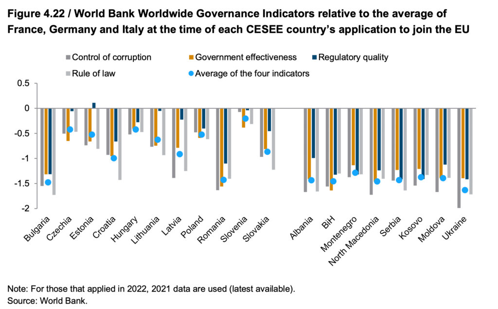 Im Rahmen eines beschleunigten Beitrittsverfahrens müssten institutionelle Reformen bei Meinungsfreiheit, Justiz und zur Korruptionsbekämpfung ebenfalls eine große Rolle spielen und von den Beitrittskandidaten irreversibel verankert werden. Im Vergleich zu früheren Erweiterungsrunden fordert die Studie, hier noch strenger zu sein, um unangenehme Überraschungen nach dem Beitritt zu vermeiden.