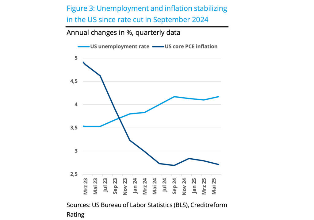 Die Inflation bleibt vor allem aufgrund von Zöllen über dem Zielwert. Der Arbeitsmarkt kühlt sich ab und das Verbrauchervertrauen sinkt.