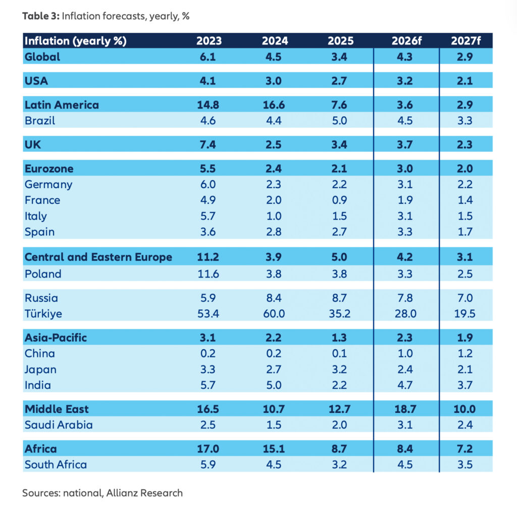 Gleichzeitig steigt der Inflationsdruck auf 3,2 Prozent in den USA und 3,0 Prozent in der Eurozone.