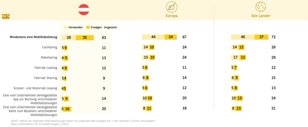 Kaum ein Unternehmen verzichtet heute auf Angebote zur Mitarbeitermobilität. Neben klassischen Dienstwagen sind in Österreich vor allem Öffi-Zuschüsse weit verbreitet: 41 Prozent der Unternehmen unterstützen ihre Beschäftigten hier finanziell.