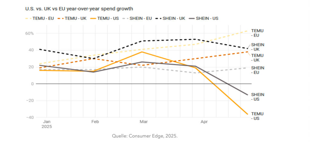 Obwohl große Plattformen wie Temu und Shein nach ihrer Benennung als „Very Large Online Platforms“ gemäß Digital Services Act (DSA) der Aufsicht der EU-Kommission unterliegen, umgehen sie EU-Vorgaben, Produktsicherheitsregeln und Verordnungen wie REACH (Chemikalien) meist ohne Konsequenz.