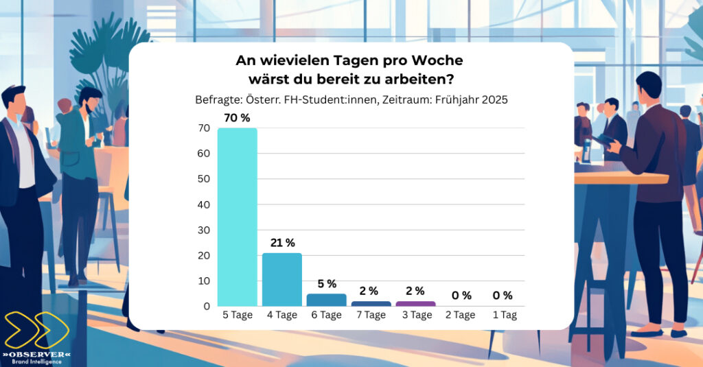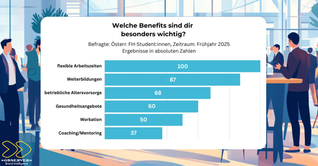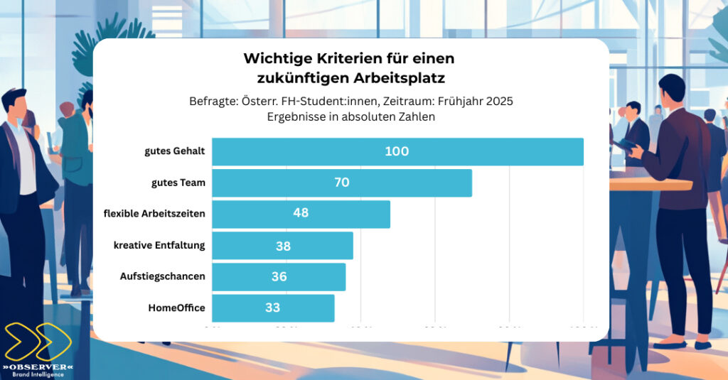 Eine aktuelle Umfrage von »OBSERVER« Brand Intelligence und den PRVA Newcomern auf Österreichs Fachhochschulen zeigt: Junge Menschen sind bereit, sich beruflich stark zu engagieren – wenn Gehalt, Werte, Arbeitsklima und Entwicklungsperspektiven stimmen.